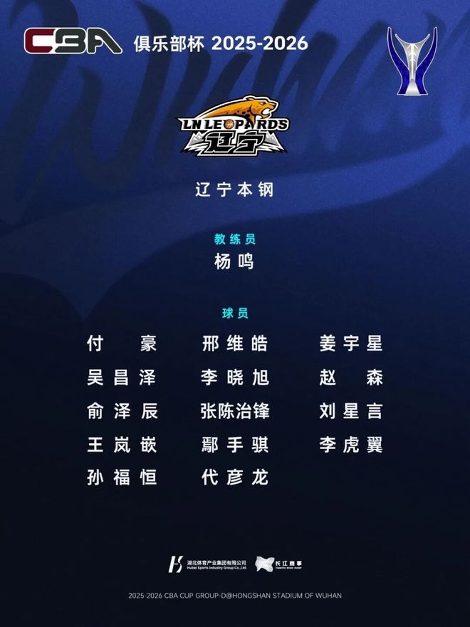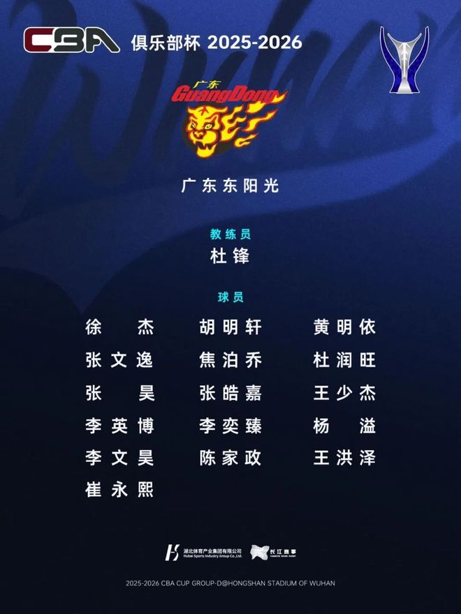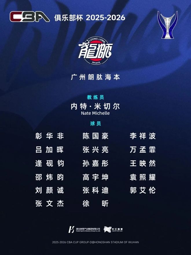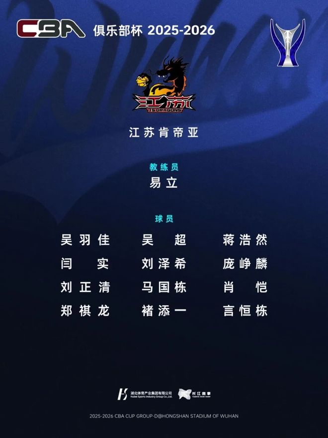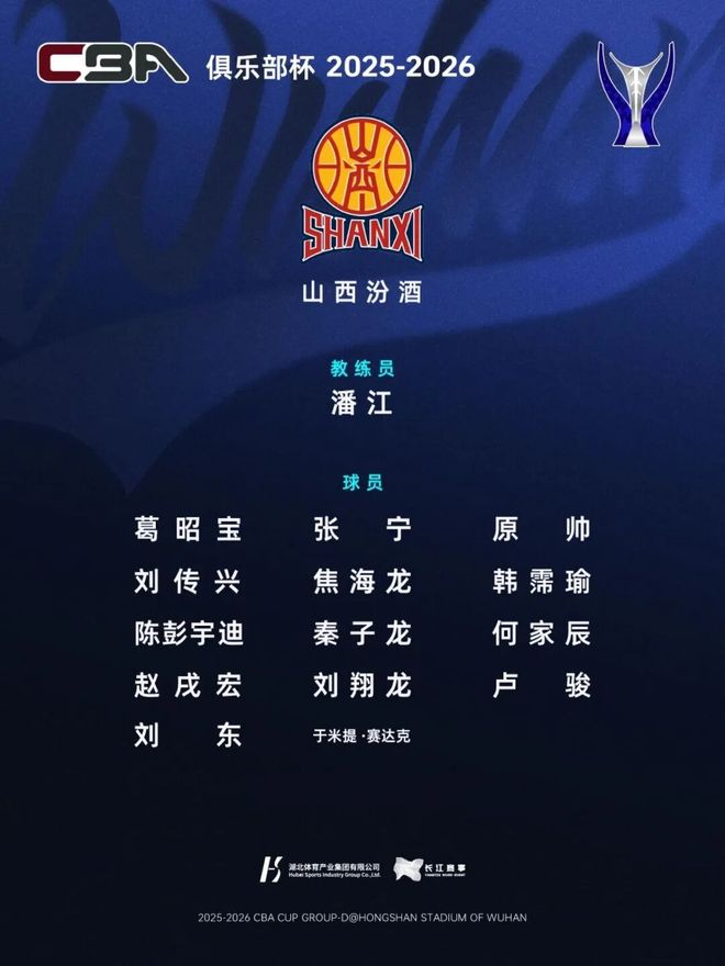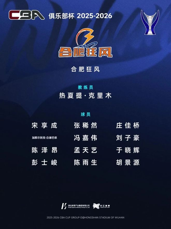 距离 第二届CBA俱乐部杯小组赛开打还有一周, 湖北武汉赛区(D组)名单出炉。